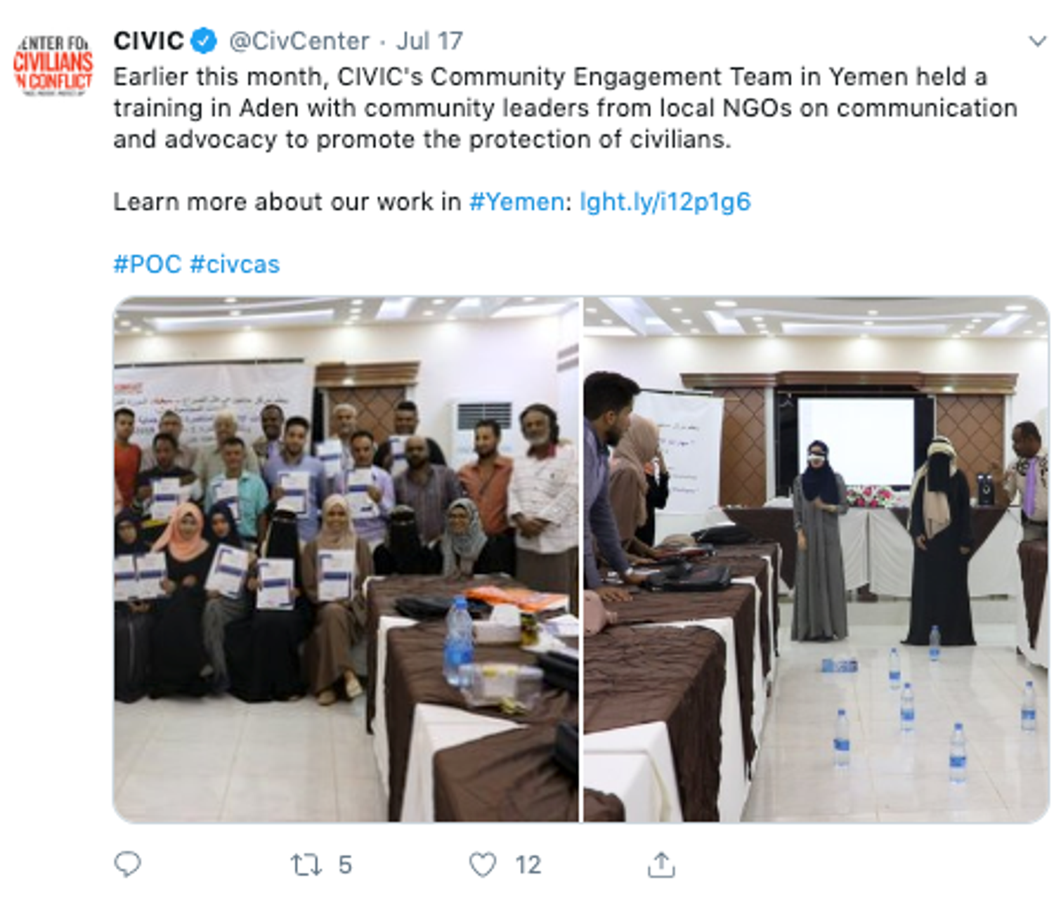 The Center for Civilians in Conflict (CIVIC) have been part of the BRIDGE programme since October 2018. They are a small not-for-profit organisation dedicated to promoting better protection of civilians caught in conflict. With headquarters in the US and field offices in many countries around the world, CIVIC shares the stories of how conflict affects civilians, equips security actors to improve civilian protection, and advocates policymakers to adopt policies recognizing and enforcing civilian rights.