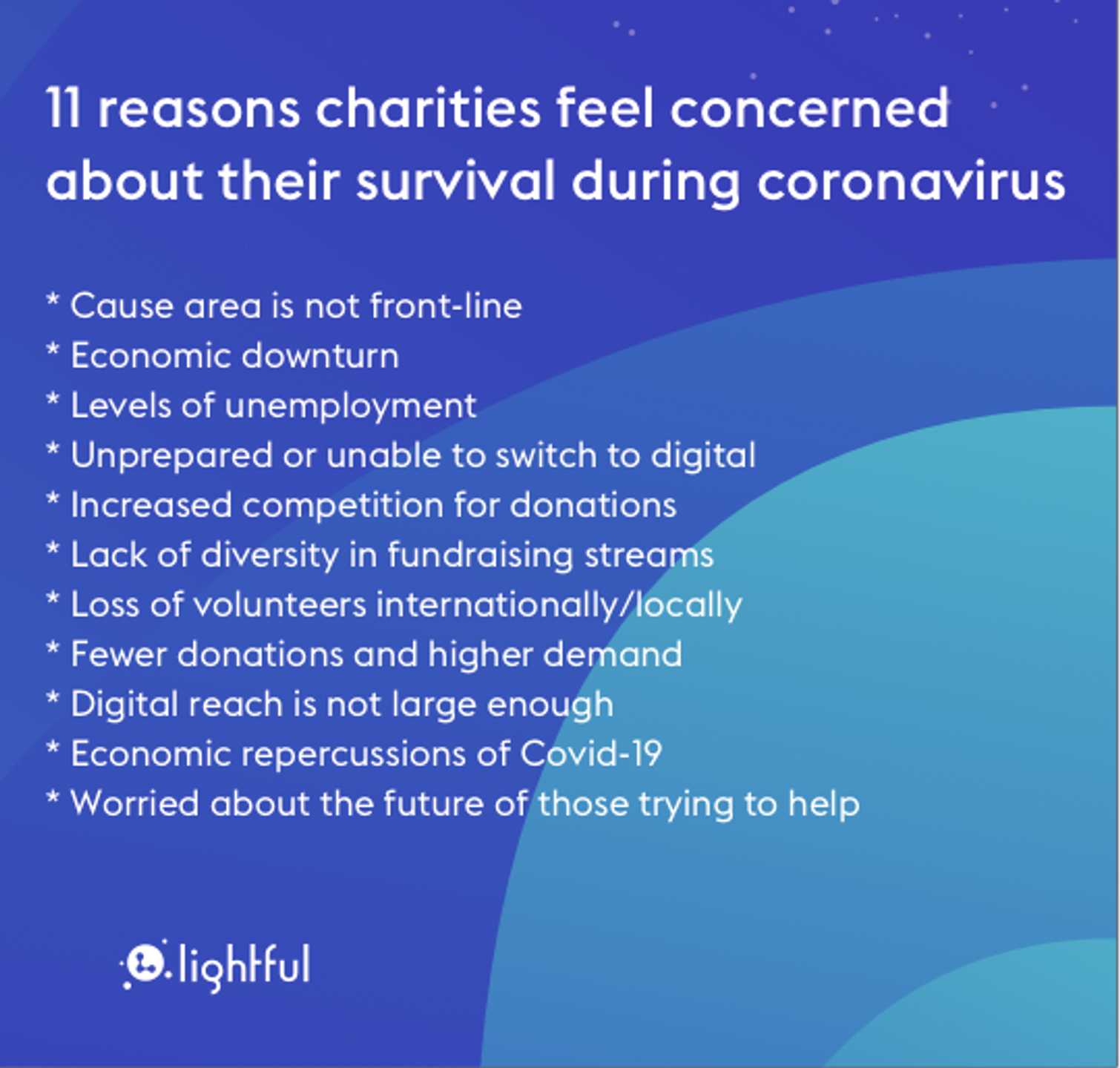 Another big concern has to do with the struggle switching to digital or the lack of skills to do so. Worrying that your digital reach or your online donations are not enough can still go back to the importance of equipping charities with the digital tech and skills to continue their work.