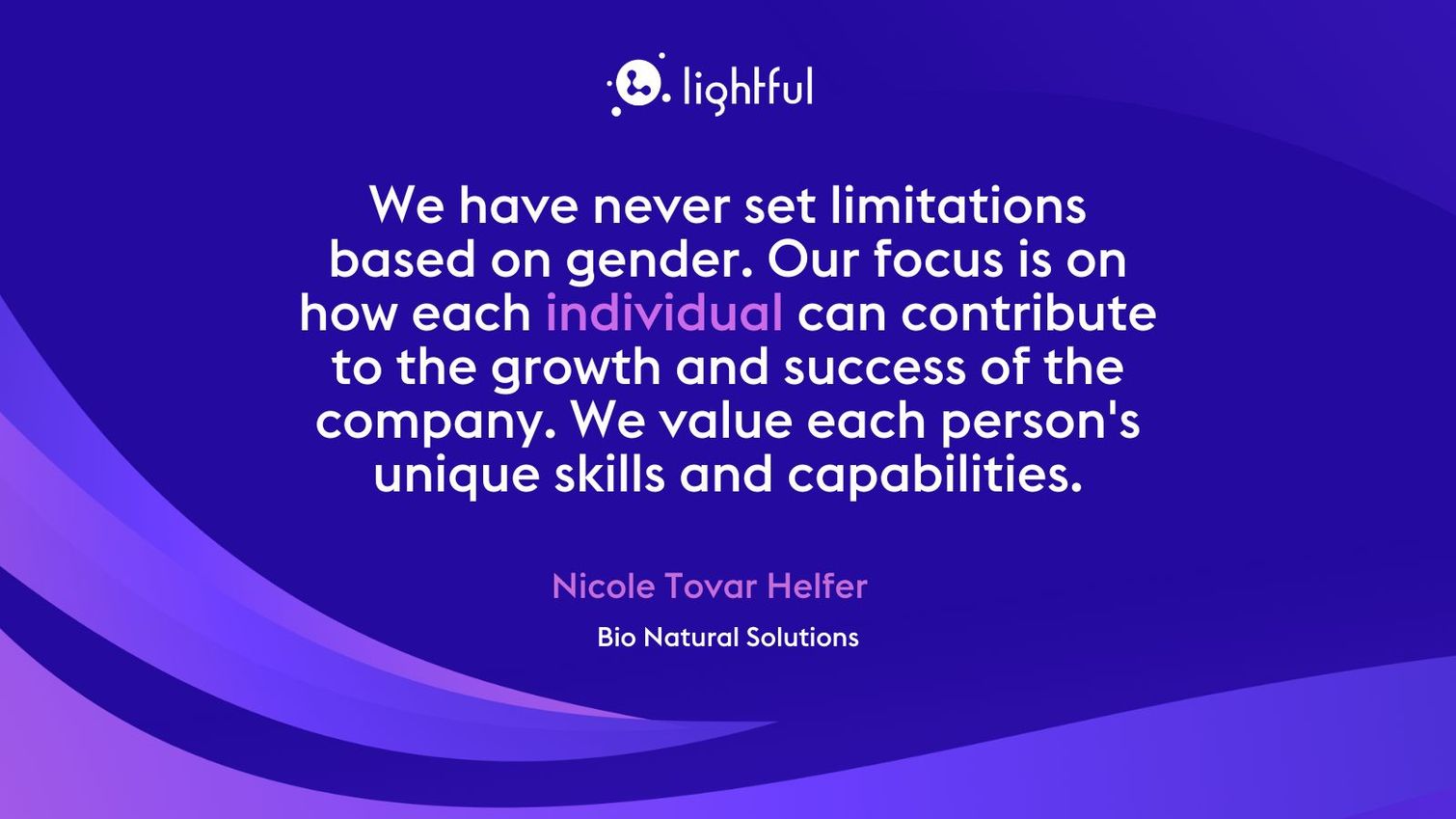 Bio Natural Solutions: Ultimately, for us, gender equality means recognising and valuing individual skills over and above any gender-based limitations, thus contributing to a diverse and equitable work environment in STEM.