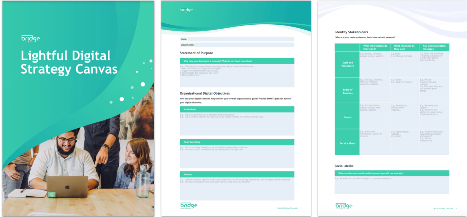 Because of this, we want to share some of the materials we used on how to create your first, or refine, your digital strategy. Please find Lightful’s Digital Strategy Canvas here as a free open resource for your organisation to download and use to help build your digital strategy.