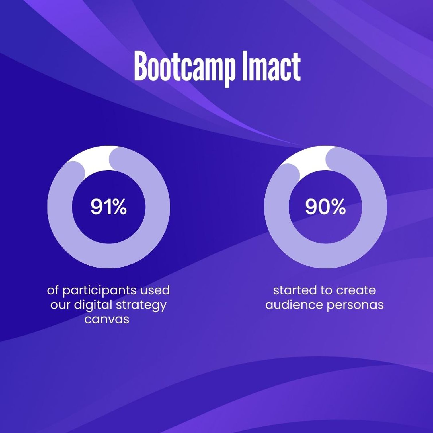 The Digital Bootcamp webinars were attended by individuals from 31 different countries, spanning six continents! We ask participants to rate their confidence out of 5 at the beginning and end of Bootcamp. The results have shown an increase in confidence in all three key areas: audience understanding, strategy, and overall digital confidence. 95% of participants didn’t have a digital strategy in place at the start of Bootcamp and we were delighted that after the two weeks, over 90% had used Lightful’s digital strategy canvas to kick-start their strategy development process!