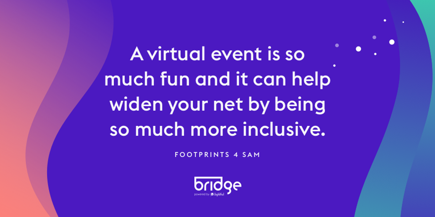 Have courage and don’t hesitate, we have to try new things. A virtual event is so much fun and it can help widen your net by being so much more inclusive.