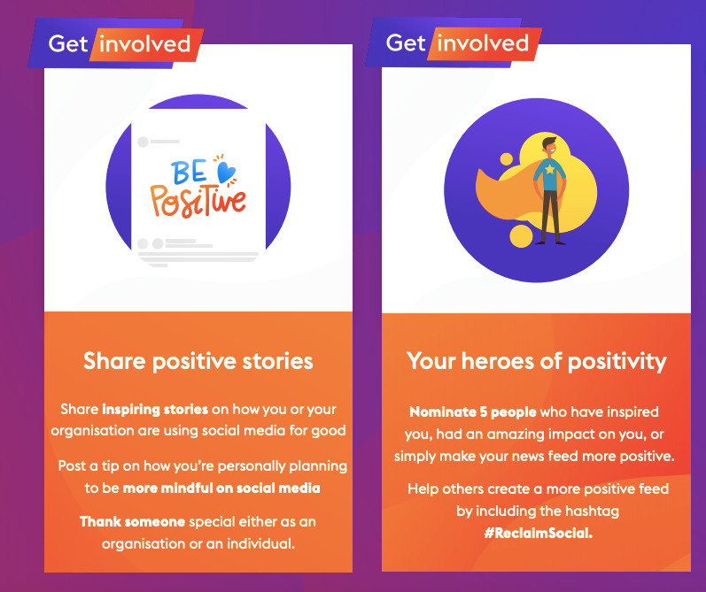 - Help others create a more positive feed by including the hashtag #ReclaimSocial.
