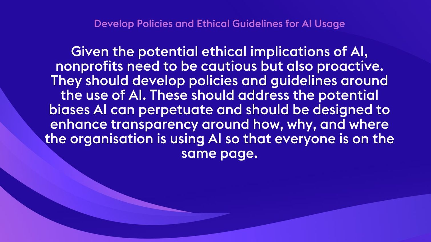 92% of attendees at the webinar said they were concerned about the ethical considerations of AI, and rightly so. AI algorithms can perpetuate biases, leading to discrimination and inequality. It’s important that nonprofits understand the potential ethical implications of AI, and ensure everyone in their team has the right skills to work with AI ethically and successfully.