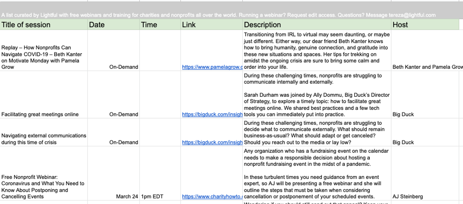 We’ve created a master spreadsheet to make it easier for everyone to add all their upcoming webinars. You can access it here.