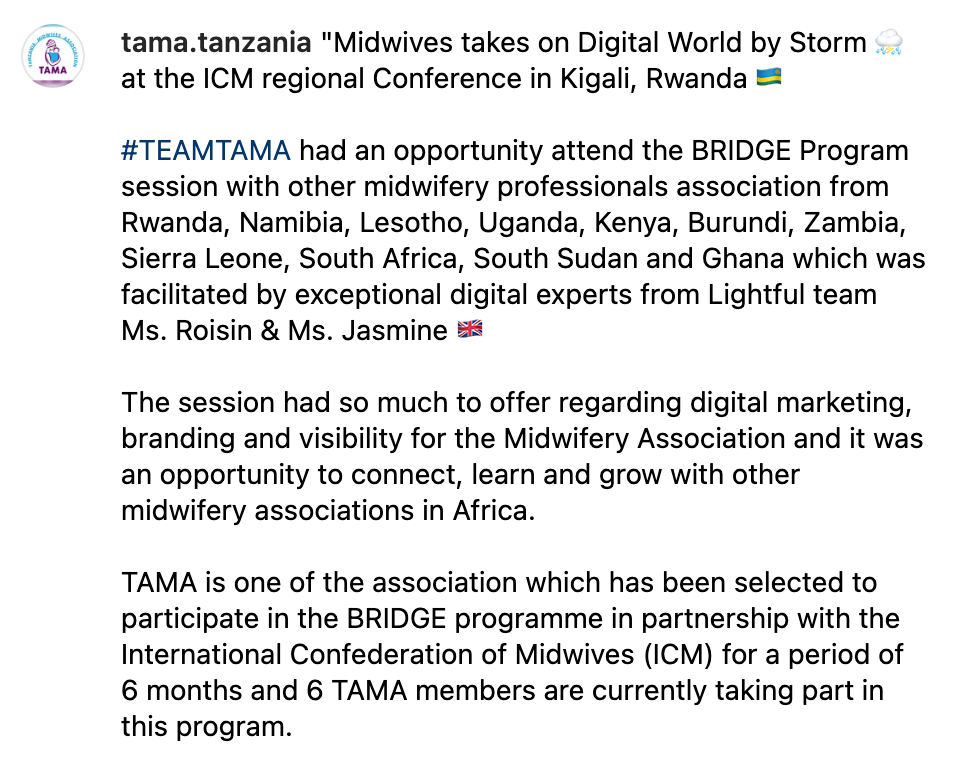 One thing is certain, Midwives’ Associations have a powerful voice, a compelling story, and a strong desire to share it with the world - midwives matter. Digital is often an untapped resource across the nonprofit sector, particularly for Midwives’ Associations who don’t typically identify as NGOs in the same way as ot her organisations. We hope that through Lightful’s learning journey, participants will feel confident and empowered to become digital champions within their Associations, and beyond.