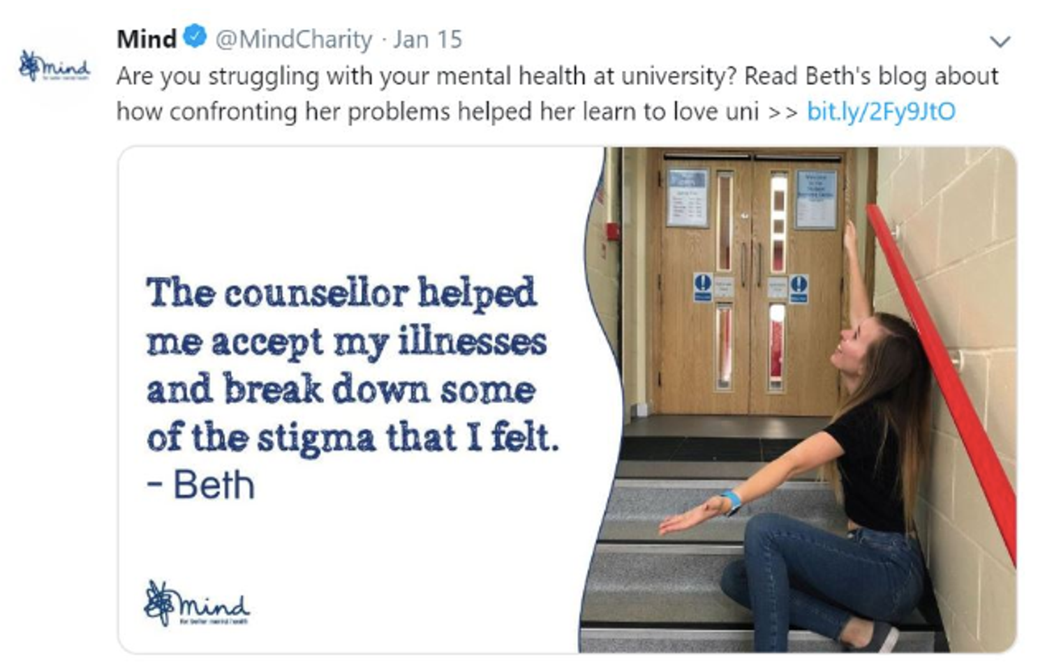 In this example, it’s clear that this post is targeted at students who are struggling with mental health at university or college, not just anyone who has a mental health issue.