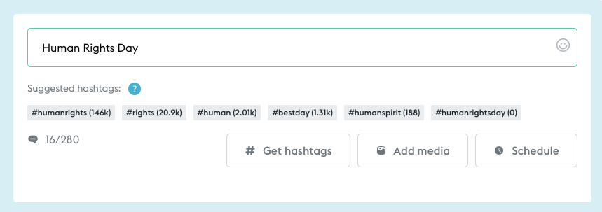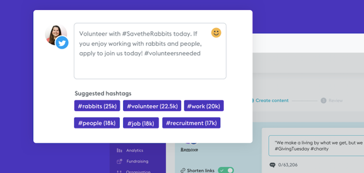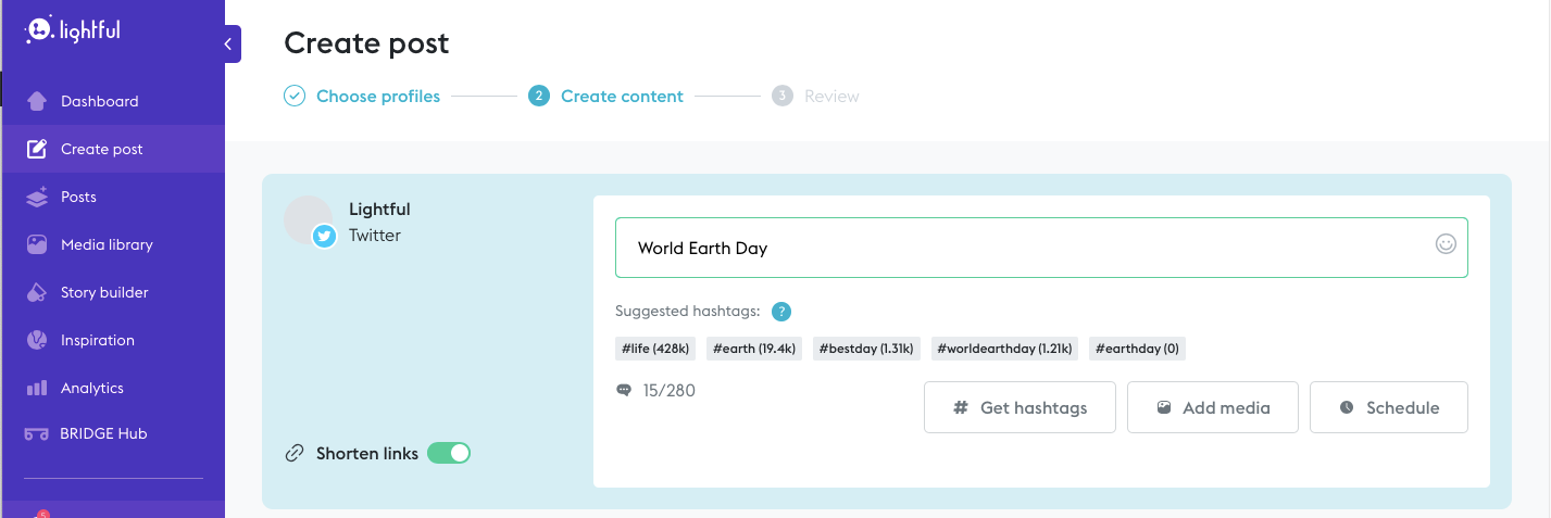 Let’s say you’ve started drafting a social media post. If you’re planning to talk about World Earth Day as an awareness day, for example, you see a series of suggested hashtags.