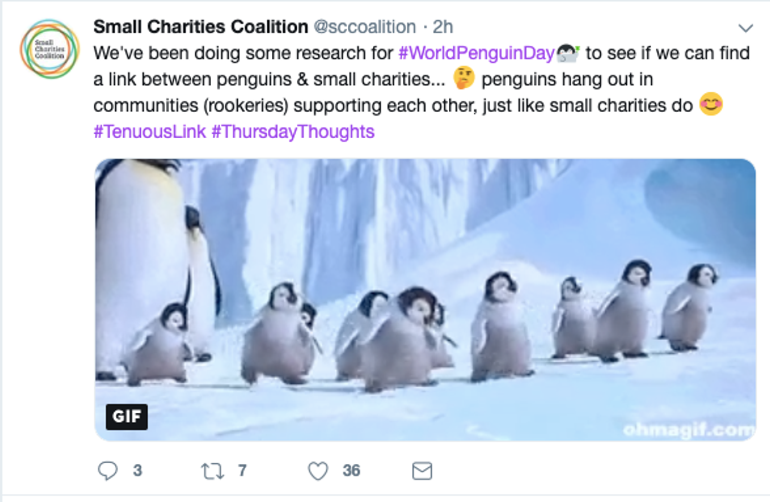 If you’re struggling to create new content, search for relevant hashtags and what others are posting in similar organisations. Also, it might be useful to look at popular hashtags such as #CharityTuesday that is trending every week to come up with new creative ideas.