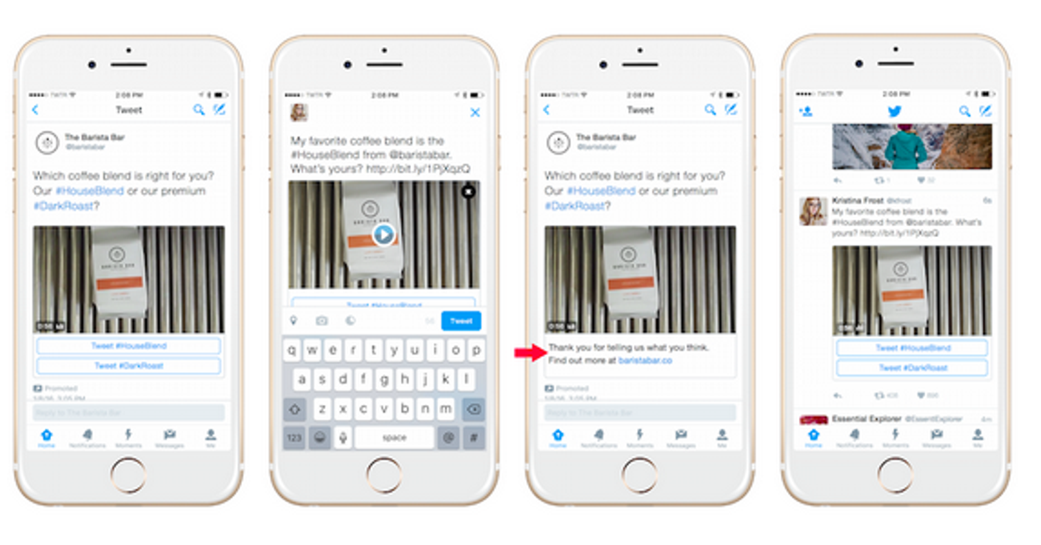 If you’re including paid ads to your Twitter marketing strategy then there is a special ad format that is aiming specifically for increased engagement. Twitter’s conversational ads encourage people to tweet using a particular hashtag, which makes it easier to join a conversation. If you’re running a campaign and want to engage as many people as possible, this ad format can be very helpful.