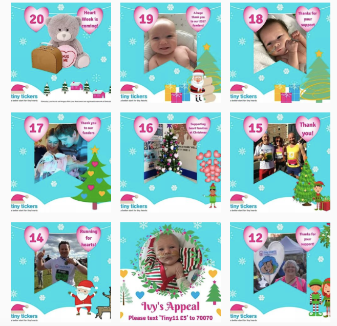 You can also take your creativity to the next level on Instagram by creating a series of posts that make your profile more interesting. This is an example by Tiny Tickers and how they created an advent calendar in December to highlight their supporters’ work.