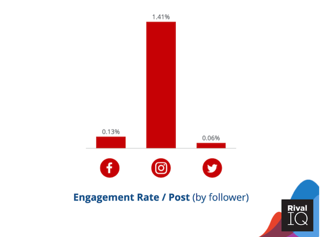Looking at the engagement rates in the nonprofit sector for Instagram, the average engagement rate seems to be at 1.41%. Meanwhile, the engagement rate for Facebook is at 0.13% and for Twitter at 0.055%.