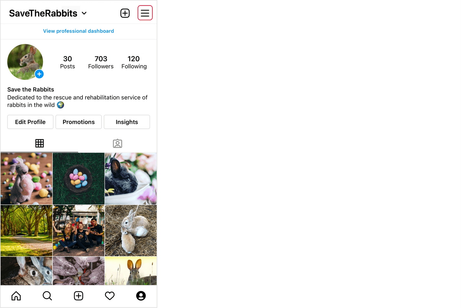Go to your profile and tap the menu icon in the upper right-hand corner