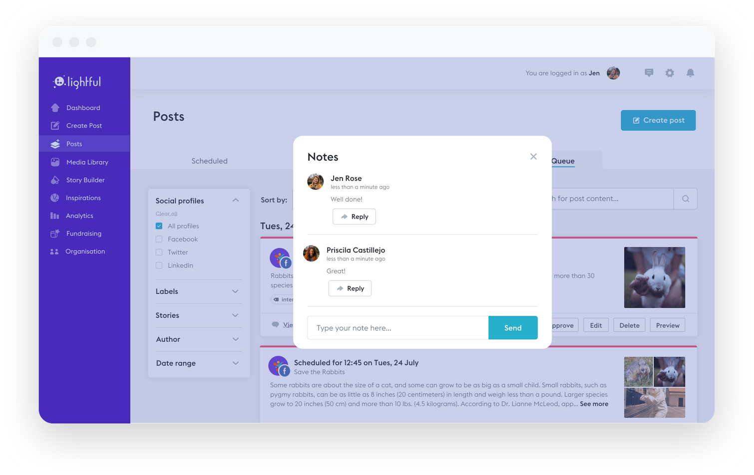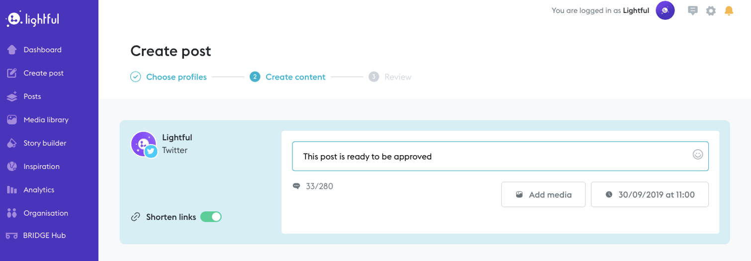 Don’t forget that you can start creating your posts immediately in Lightful and send them to the approval queue as and when you need them to be approved. This adds an extra layer of security so you can ensure all posts meet your brand guidelines before they’re published.