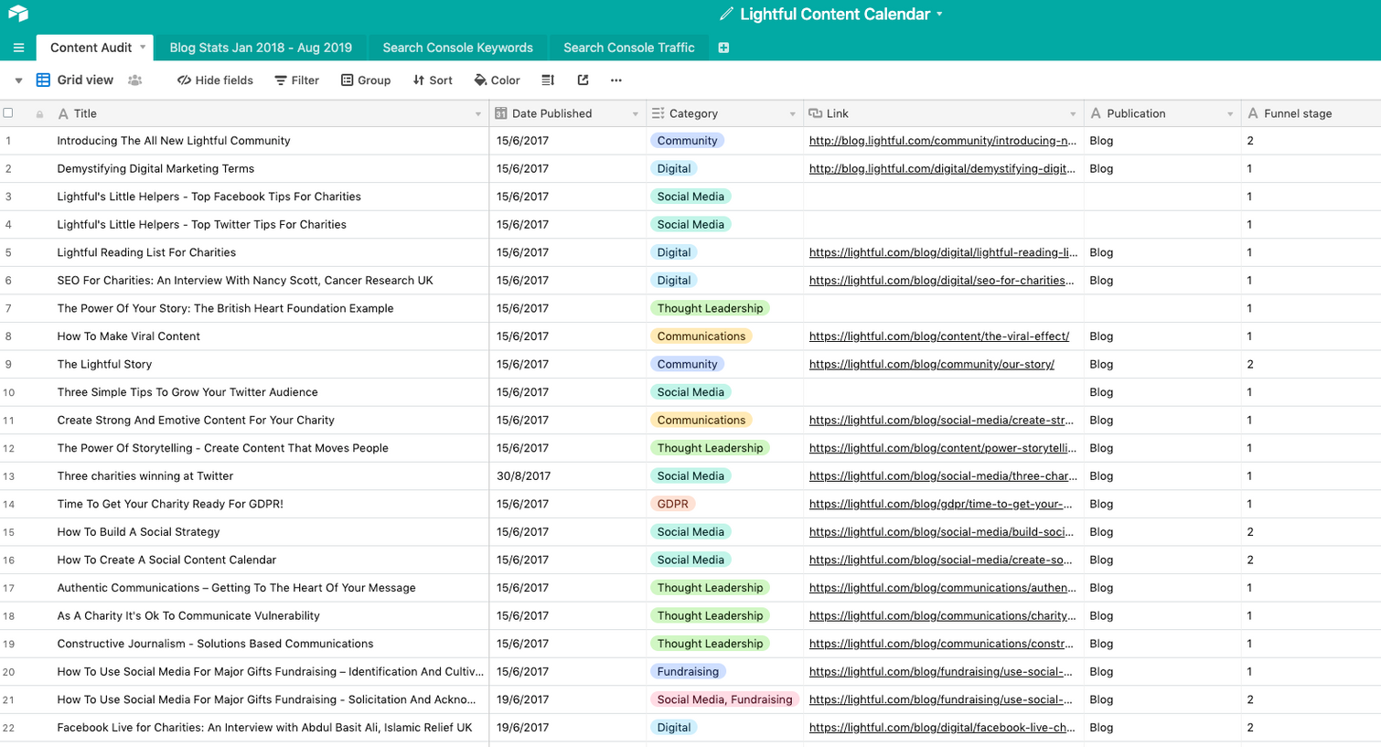 The first step can sometimes be more challenging than it looks as everyone has their own ways of working. I’m going to talk about Airtable, but some people love using other tools like Trello, Google Sheets or even JIRA (a management tool used by software companies). It’s less about the tool itself and more about finding a tool that everyone is happy to use.