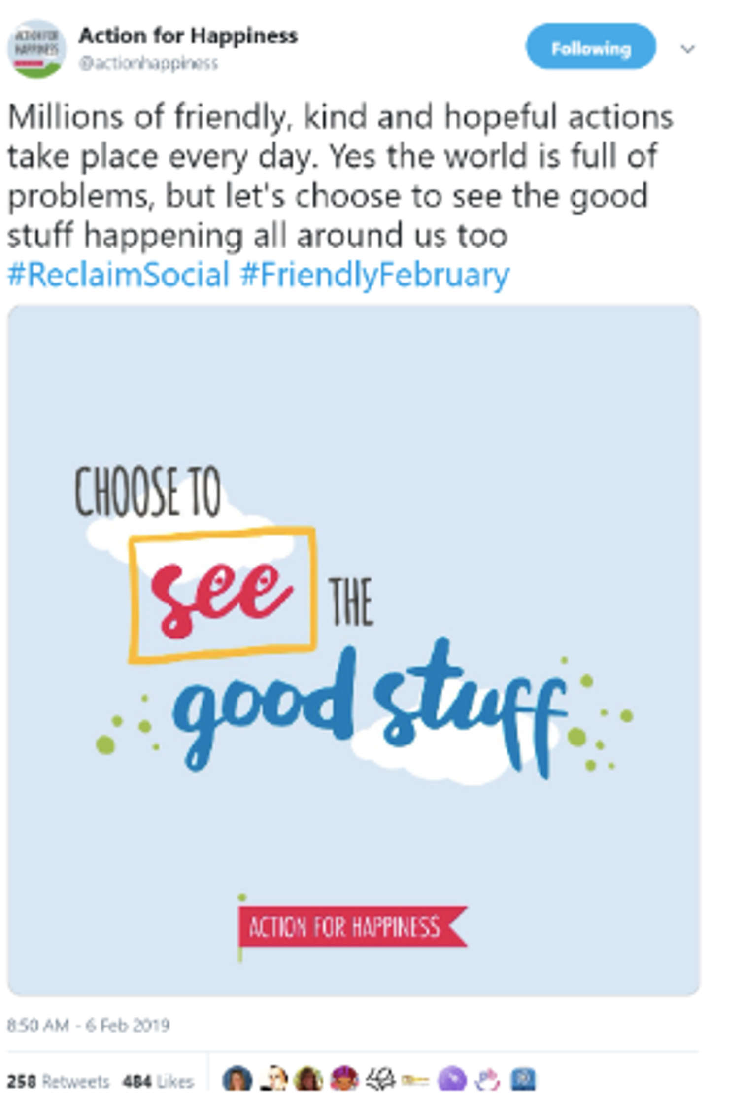 Action for Happiness is always sharing positive messages (which is why we love them so much) and #ReclaimSocial was no exception.