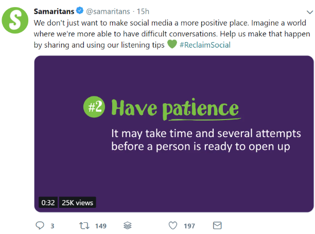 The Samaritans shared a video with tips on how to be a good listener using their S.H.U.S.H method.