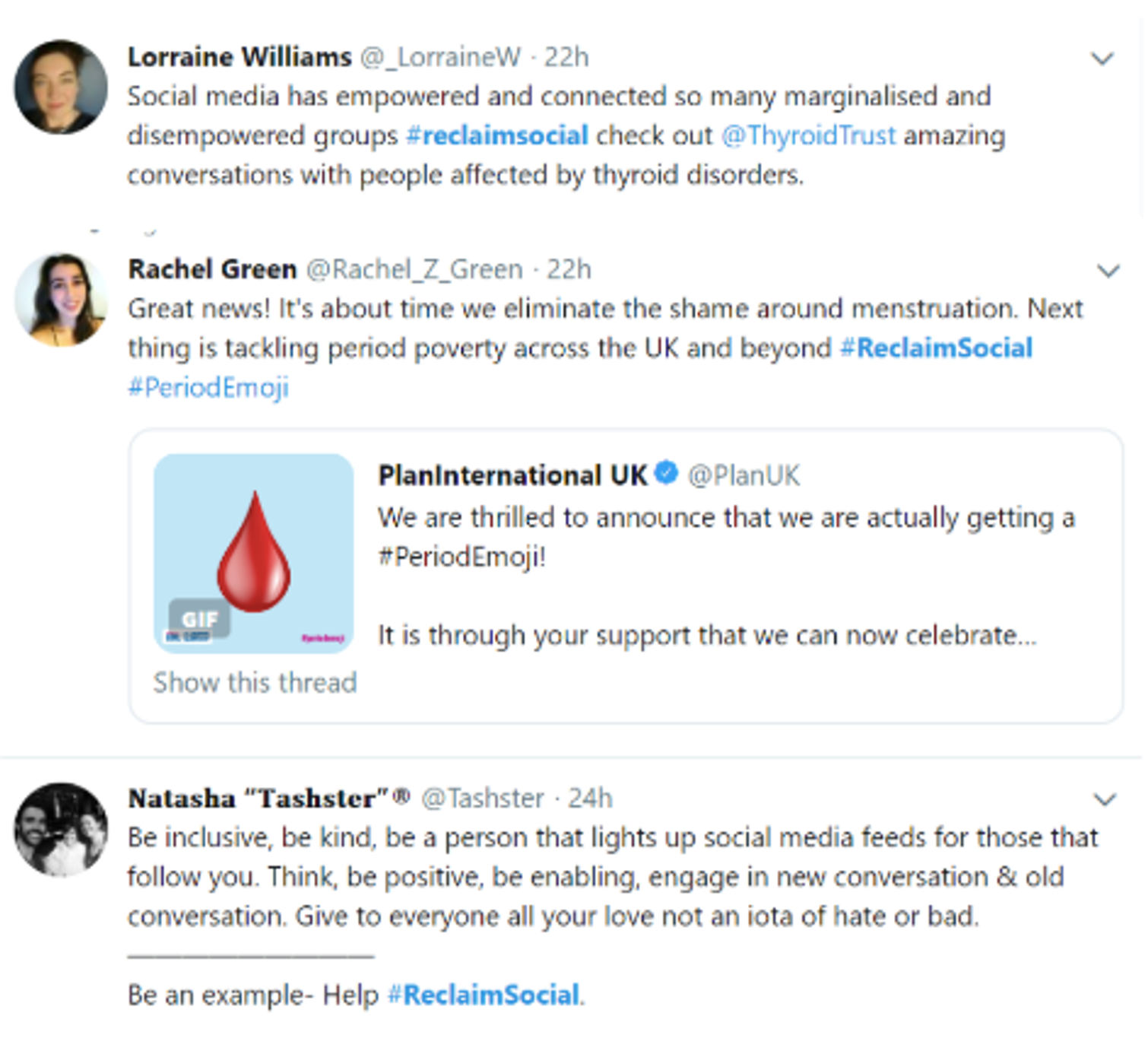 And it wasn’t just charities that got involved. Here are some lovely #ReclaimSocial tweets from people in the sector and individuals.