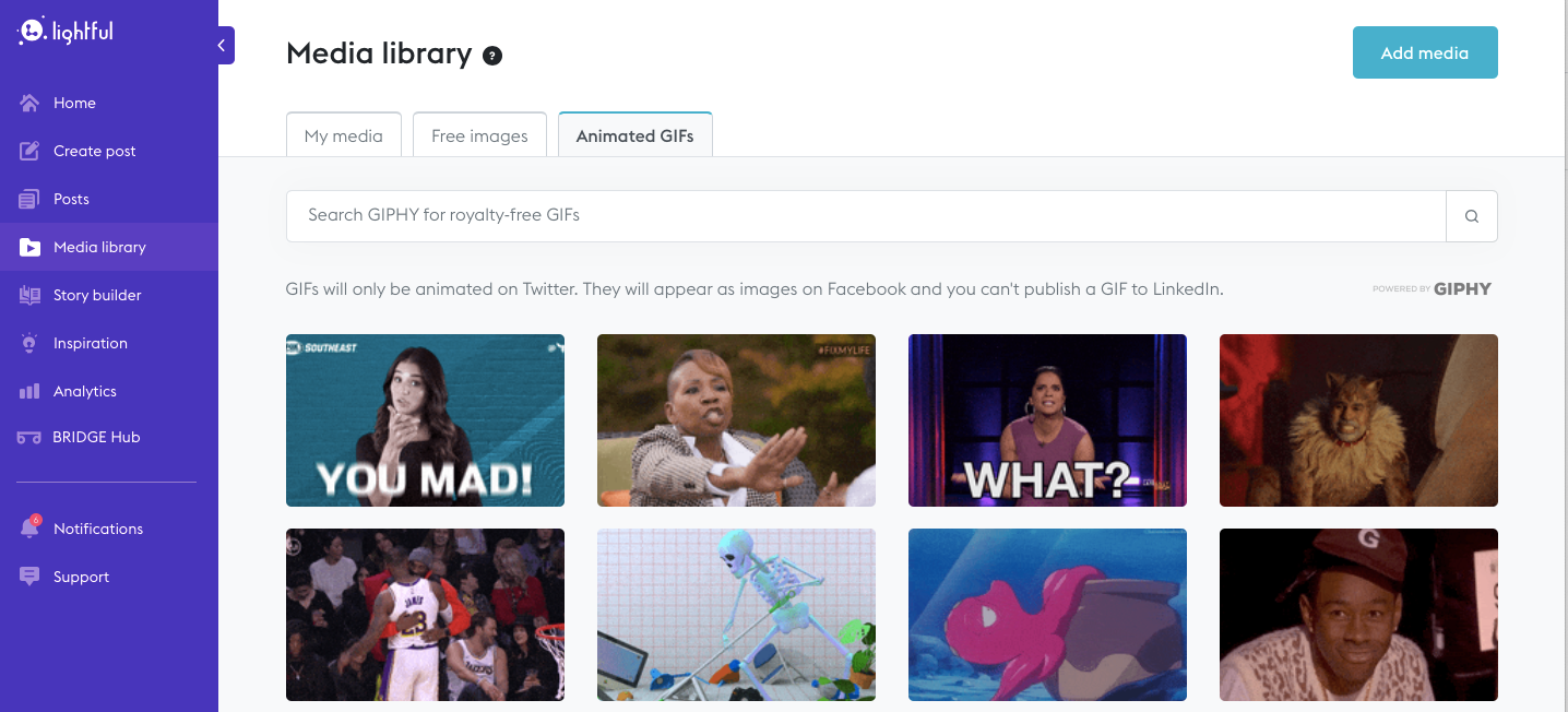 You can visit the Media Library at Lightful to click on Animated GIFs.