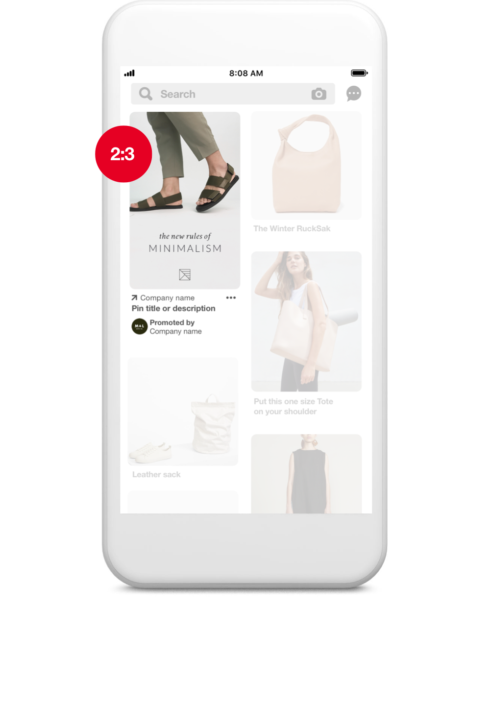 - Aspect ratio: We recommend using a 2:3 aspect ratio, or 1,000 x 1,500 pixels. Pins with an aspect ratio that’s greater than 2:3 might get cut off in people’s feeds.