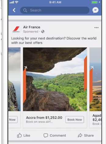 The carousel format allows you to share several photos in one post to make your message even more engaging. You can share from two to ten photos in a post and it’s a good way to tell a story with the right use of images.