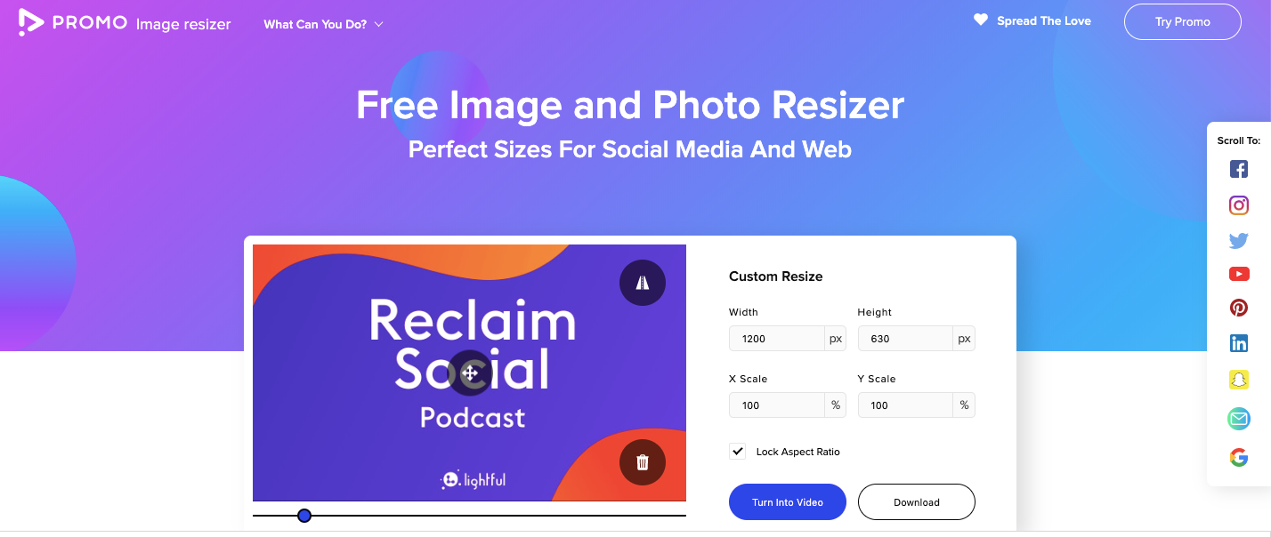 Promo is an image editor and resizer that helps you save time when creating images. You’re uploading one image and then it creates different versions of it that are ready to be used on all social media channels.