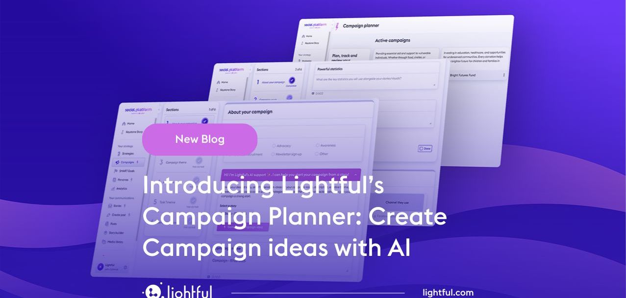 Get Started: The most difficult step for nonprofits is often the first one, so the Campaign Planner gets you started by using AI and Lightful's expertise to suggest campaign ideas based on a story you've already written.