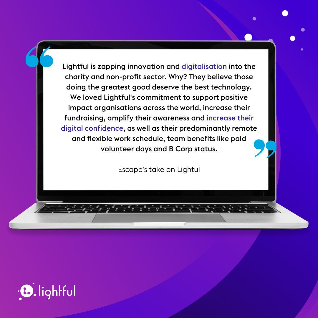 Everything we do at Lightful is people-driven; from the individuals we work with, nonprofit professionals from across the world, to the people who make the magic happen behind the scenes here in the Lightful team. Being part of the #Escape100 is a real achievement and one we are proud of, especially at a time when job-seekers are shifting attention towards more planet-friendly, human, and purpose-led companies - we are so happy to be one of these companies.