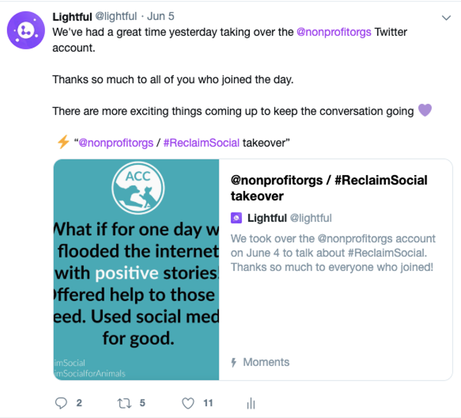 The display name twitter account was changed to ‘#ReclaimSocial/@nonprofitorgs’ that morning to reflect the takeover and lots of people and organisations got involved to share their own stories on how we can ‘#ReclaimSocial’. In the spirit of spreading positivity, let us share with you our own tips on running a successful Twitter takeover for your charity!