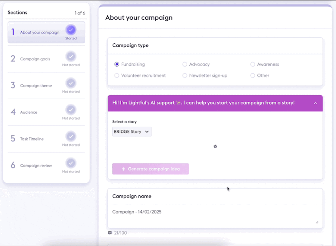 Campaigns made easy: Use our AI-powered Campaign Planner to generate ideas and access ready-to-use templates for fundraising, advocacy and more