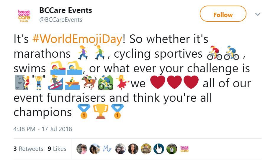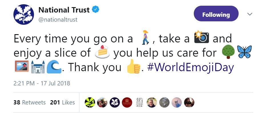 Top marks for British Heart Foundation and National Trust for these tweets, which used lots of emoji to tell a story about how people can support them and how their support matters.