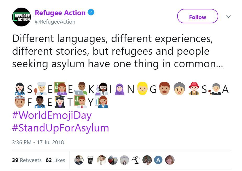 I love how both UNHCR UK and Refugee Action used emoji to highlight that refugees are people, just like you and me, and all they want is to find a home where they can live safely.