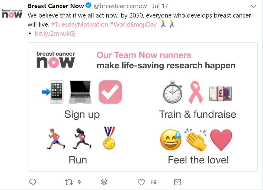 Breast Cancer Now also took the opportunity to make a fundraising ask by encouraging people to sign up to run for them.
